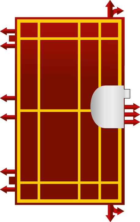 - 6 massive and solid points on the hinge side of the door