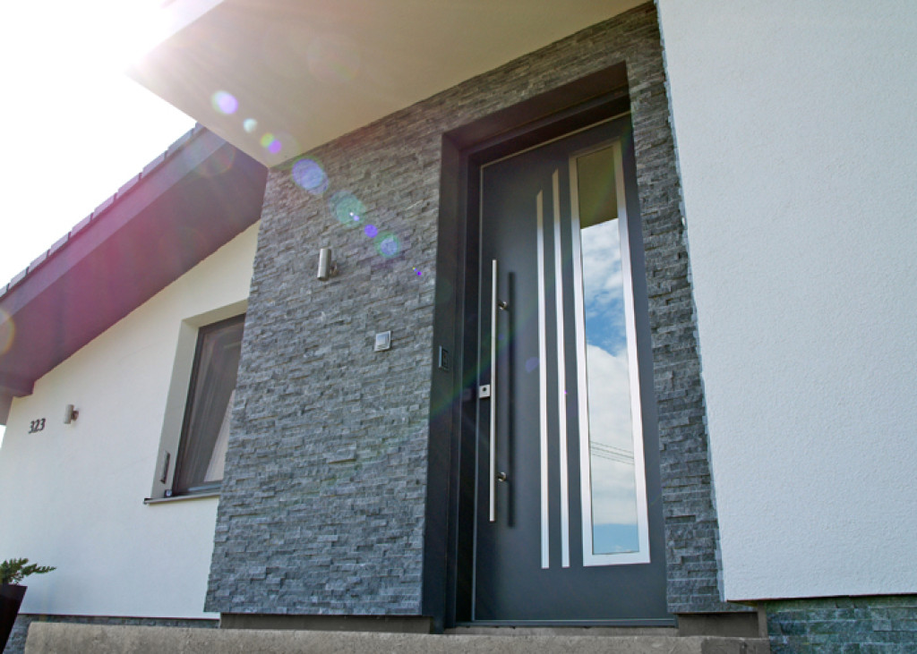 ADLO – exterior Termo door TEJEN, door surface G773, glass design PS552, top skylight