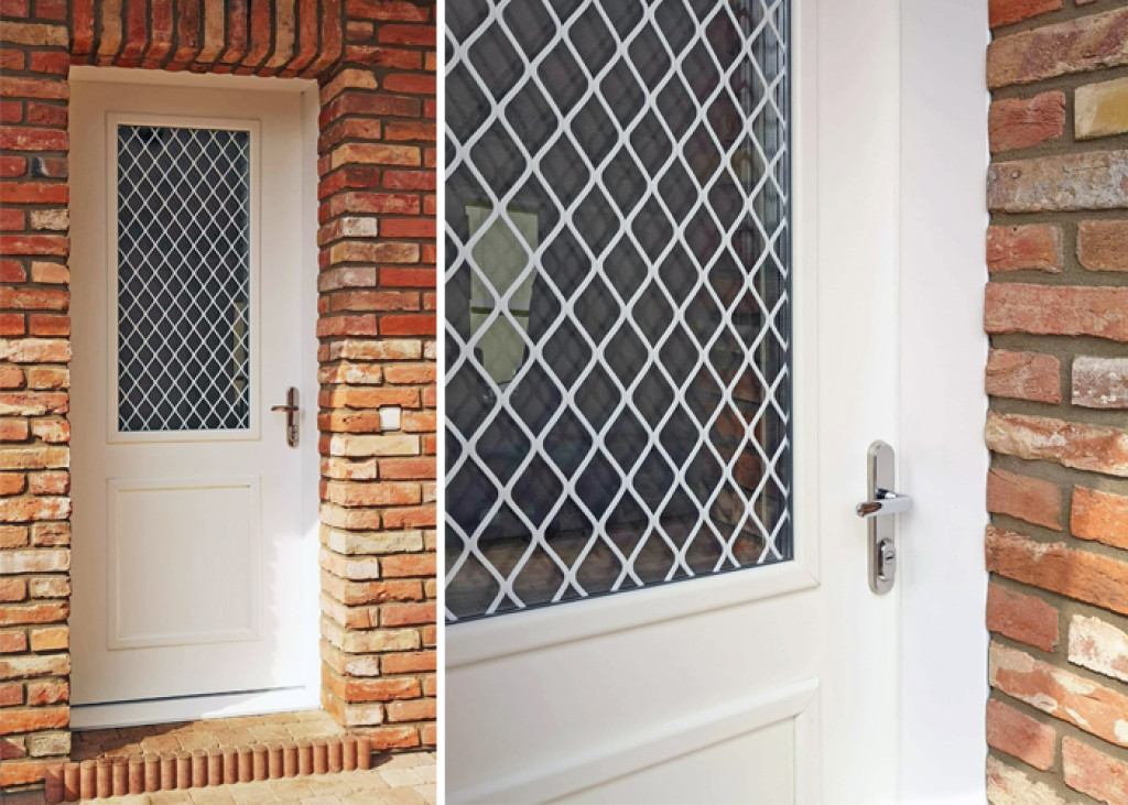 ADLO - Security door TEDUO, atypical glas, rustfree slats, double-wing door